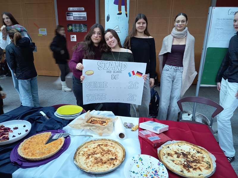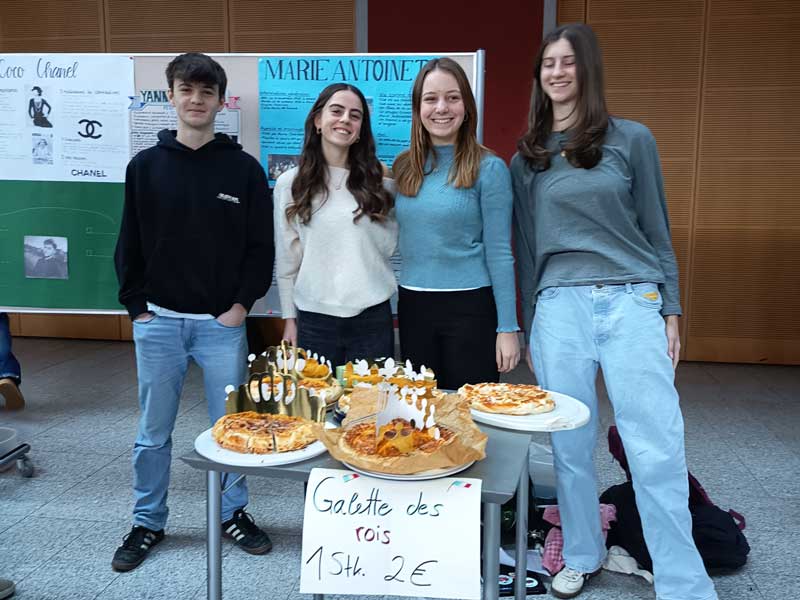 Musikalisch untermalt von französischen Klängen konnten die Besucherinnen und Besucher in die Kultur des Nachbarlandes eintauchen. Auch kulinarisch ließ das Angebot keine Wünsche offen: Truffes au chocolat, Galettes des rois, Quiche und der erfrischende Diabolo à la menthe sorgten für echtes französisches Flair – und für lange Schlangen vor den Ständen.